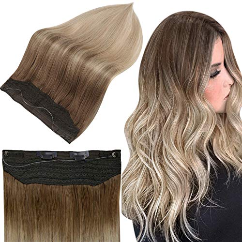 Full Shine Halo Extensions 14 Inch Brazilian Hair Balayage Color 10 Fading To 14 Dark Blonde 70g Per Pack Fish Wire Hair Extensions Real Remy Human Hair Full Head For Women In